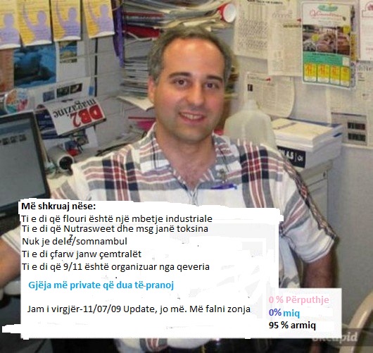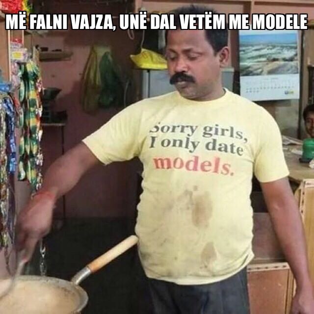 Teksti i shkruar në bluzen që mban veshur, nuk përshtatet me pamjen e tij aspak. Është vërtet për të qeshur. Ai nuk mund të jetë i vetëdijshëm për kuptimin e tekstit.
