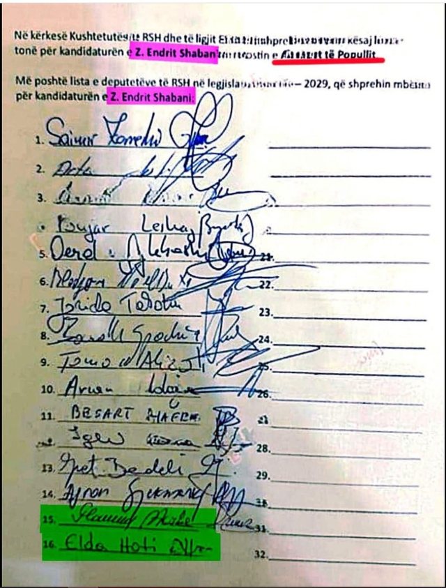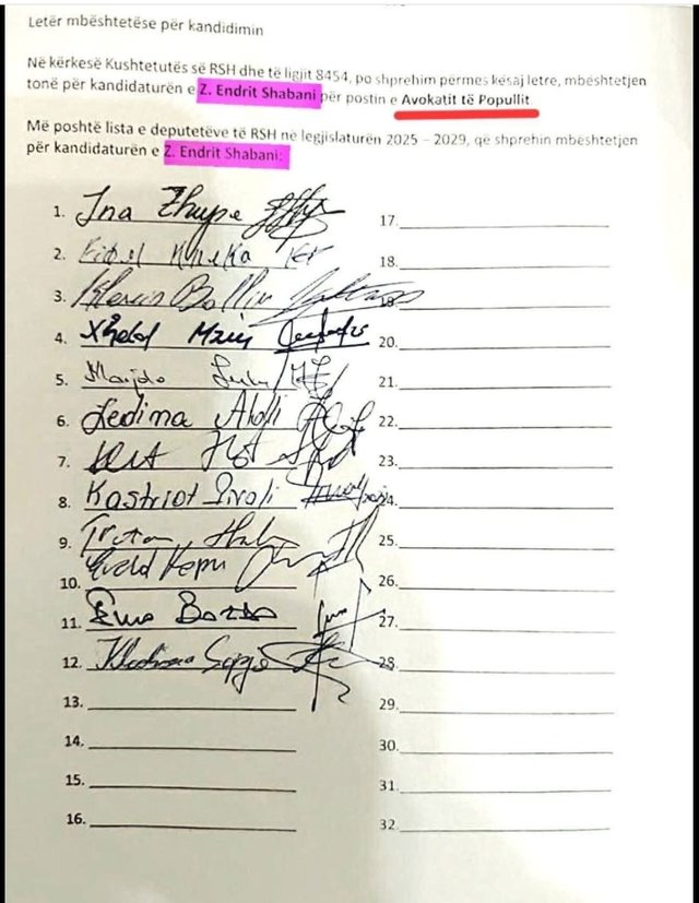 Opozita ka 50 deputete ne Parlament. Nga keta 35 kane firmosur per Endri Shabanin. Besim Ndregjoni dhe Adriana Kalaja u rropaten dhe mezi mblodhen firmat e nevojshme. Por mos i vini faj deputeteve.