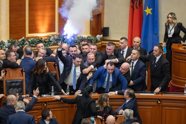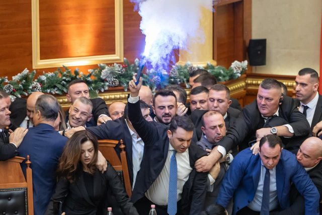 Seanca u shoqërua me flakadanë, hedhje uji dhe kartonësh votimi ndaj Niko Peleshit.