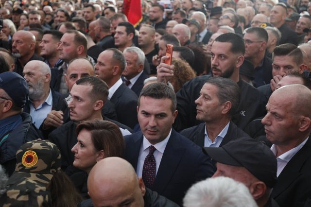 Këngët patriotike nuk munguan në protestë, ndërsa veteranët e UÇK-së udhëtuan nga Kosova të veshur me uniformën ushtarake, si dëshmi e gjallë e luftës për liri.