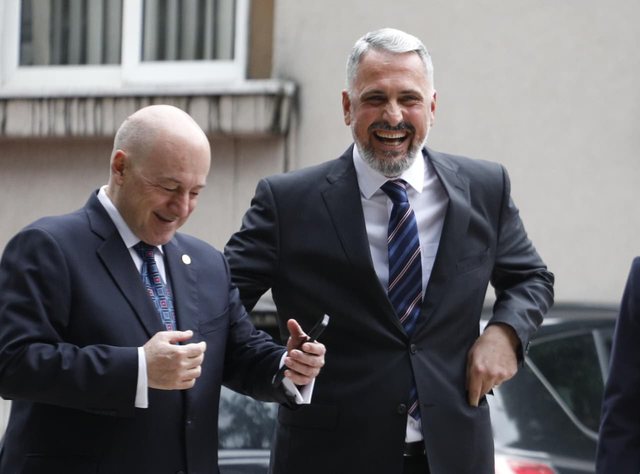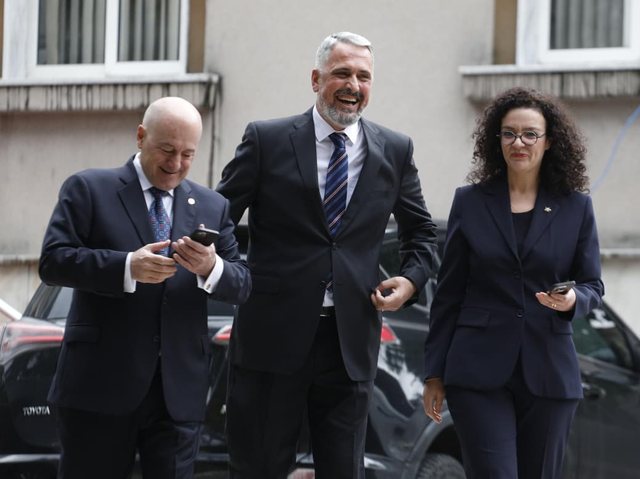 Pas ceremonisë së betimit, Vokshi shtrëngoi duart me Zaçajn, mandati i së cilës kishte përfunduar që në muajin prill.