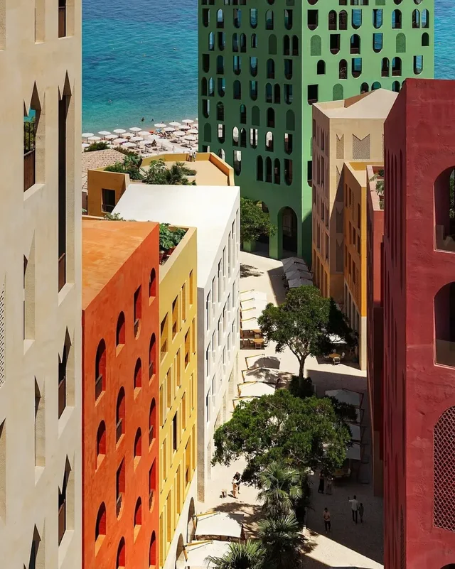 Kompleksi është konceptuar si një fshat mesdhetar vertikal, me kalime të ngushta, sheshe të vogla dhe hapësira komunitare që krijojnë ndjesinë e një qyteti të gjallë dhe intim, larg modelit të resorteve të izoluara.