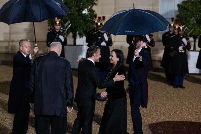Në ceremoninë që u zhvillua në pallatin e Elysé-së, çifti Rama u përshëndet në mënyrë të ngrohtë nga Presidenti Macron dhe bashkëshortja e tij, Brigitte Macron, duke u bërë pjesë e një atmosfere miqësore dhe diplomatike.