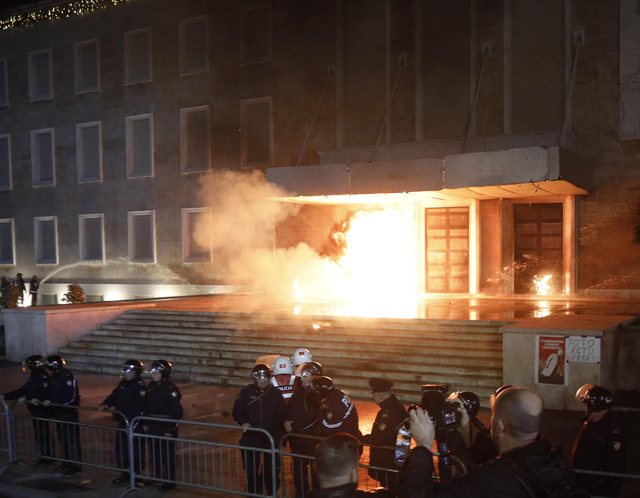 U mbyll me tensione protesta e opozitës e zhvilluar pasditen e sotme para Kryeministrisë në Tiranë, ku pas përfundimit të fjalimeve u shënuan përplasje me policinë dhe u hodhën bomba molotov drejt kordonëve të sigurisë.