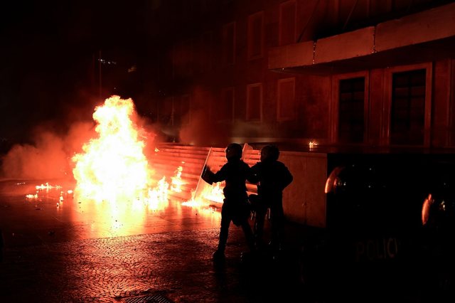 Pas përfundimit të fjalës së kryedemokratit Sali Berisha, një grup protestuesish hodhi molotovë, fishekzjarre dhe sende të forta drejt godinës së Kryeministrisë dhe forcave të policisë.